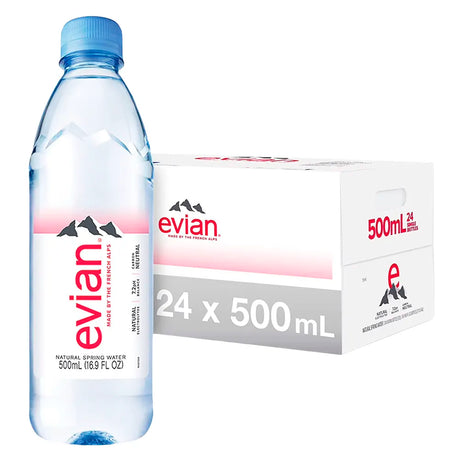 Evian Natural Spring Bottled Water 500ml/16.9oz - 24ct